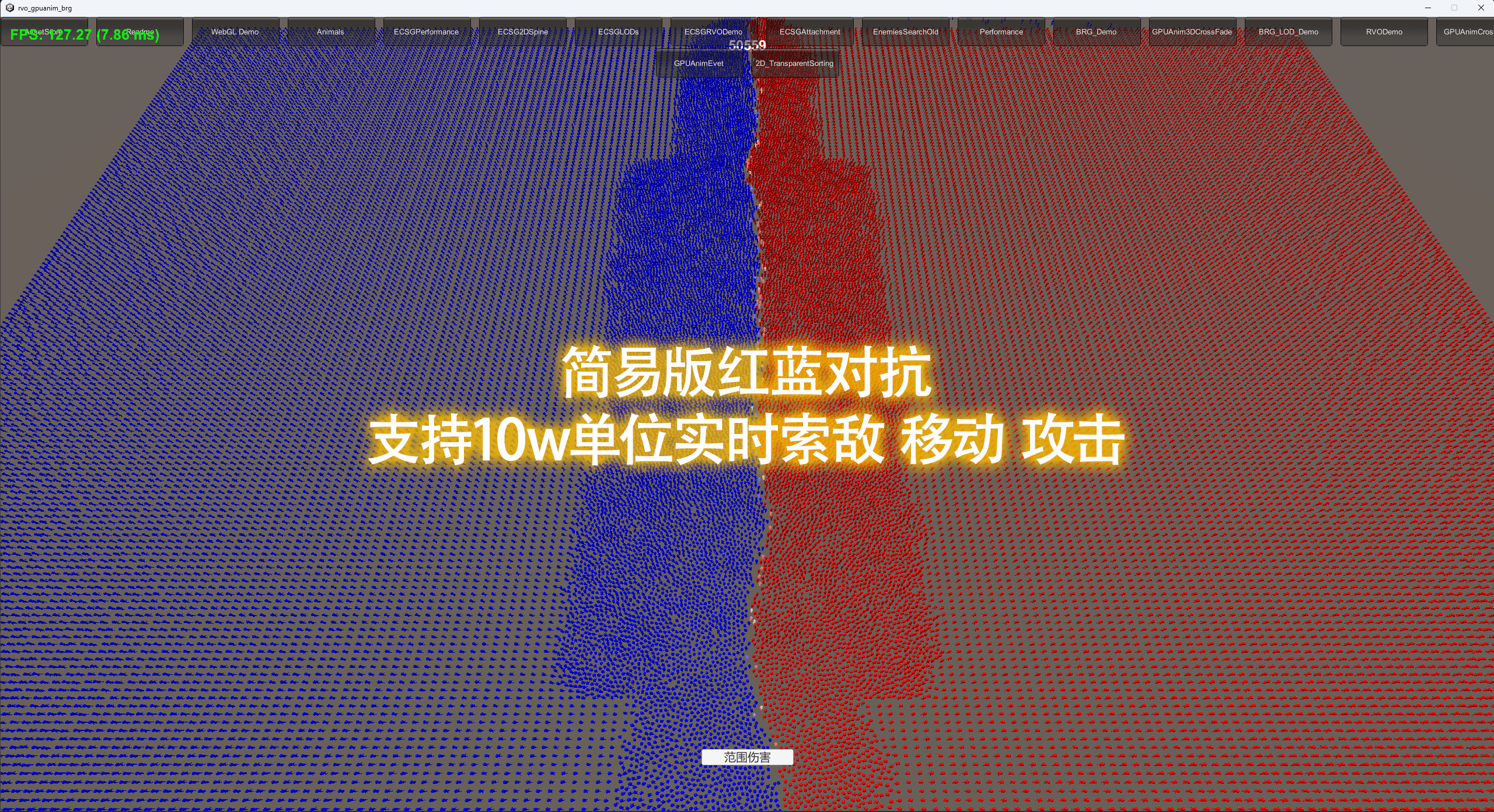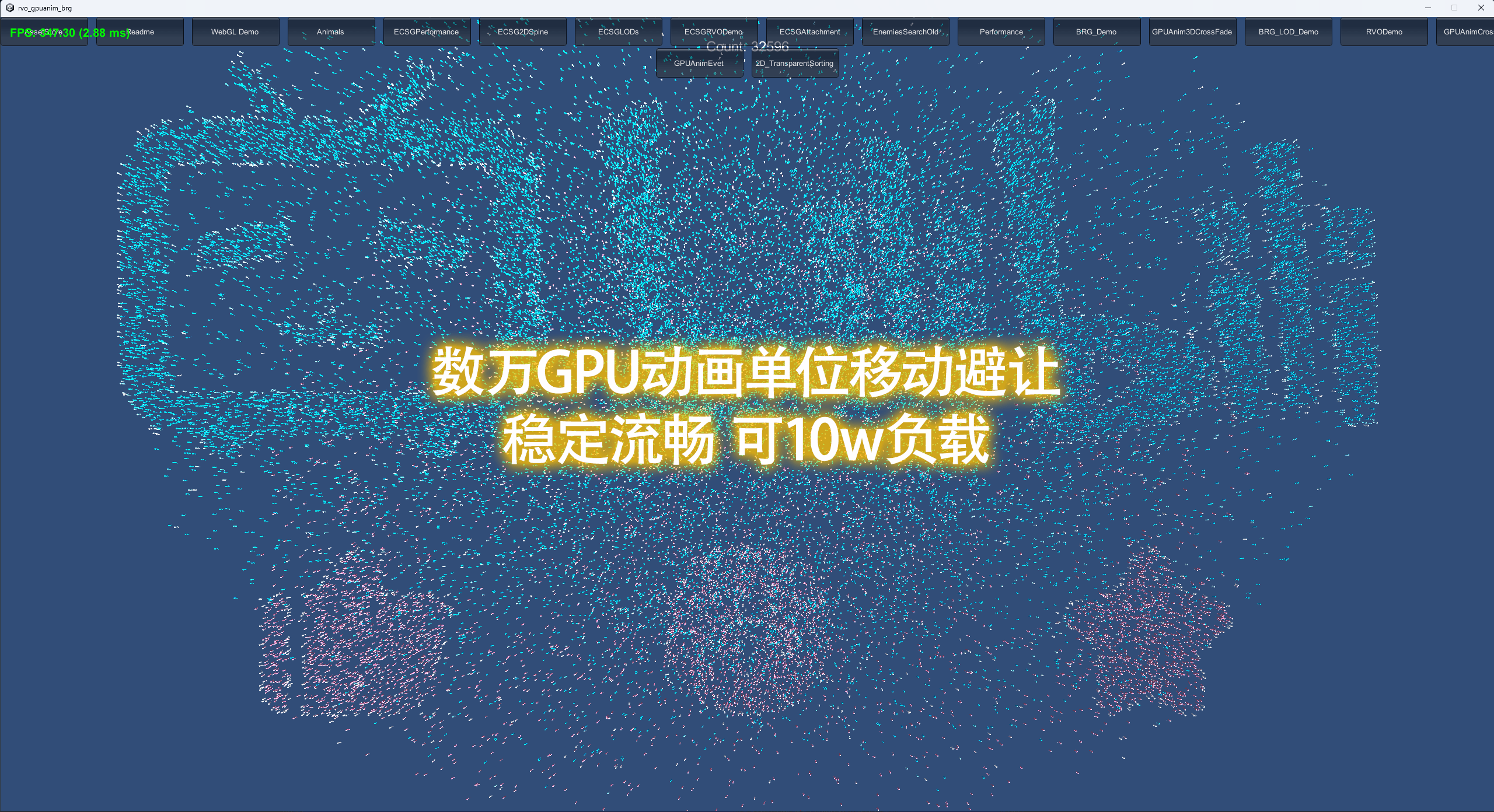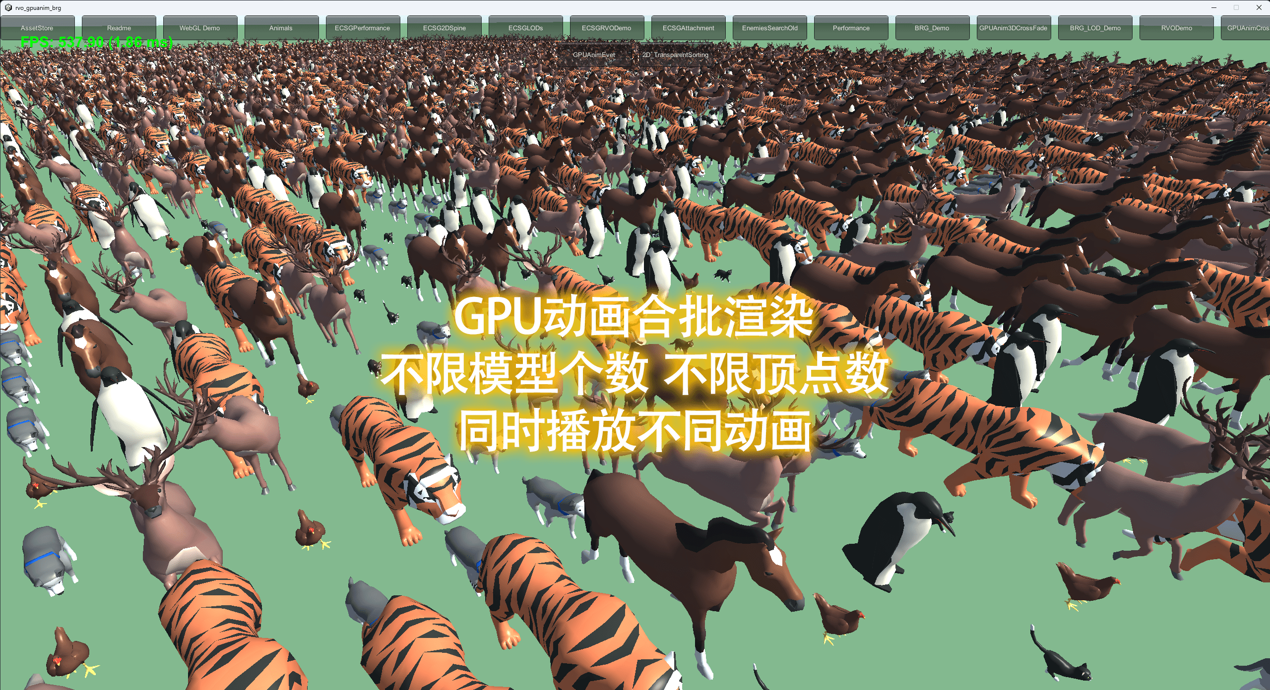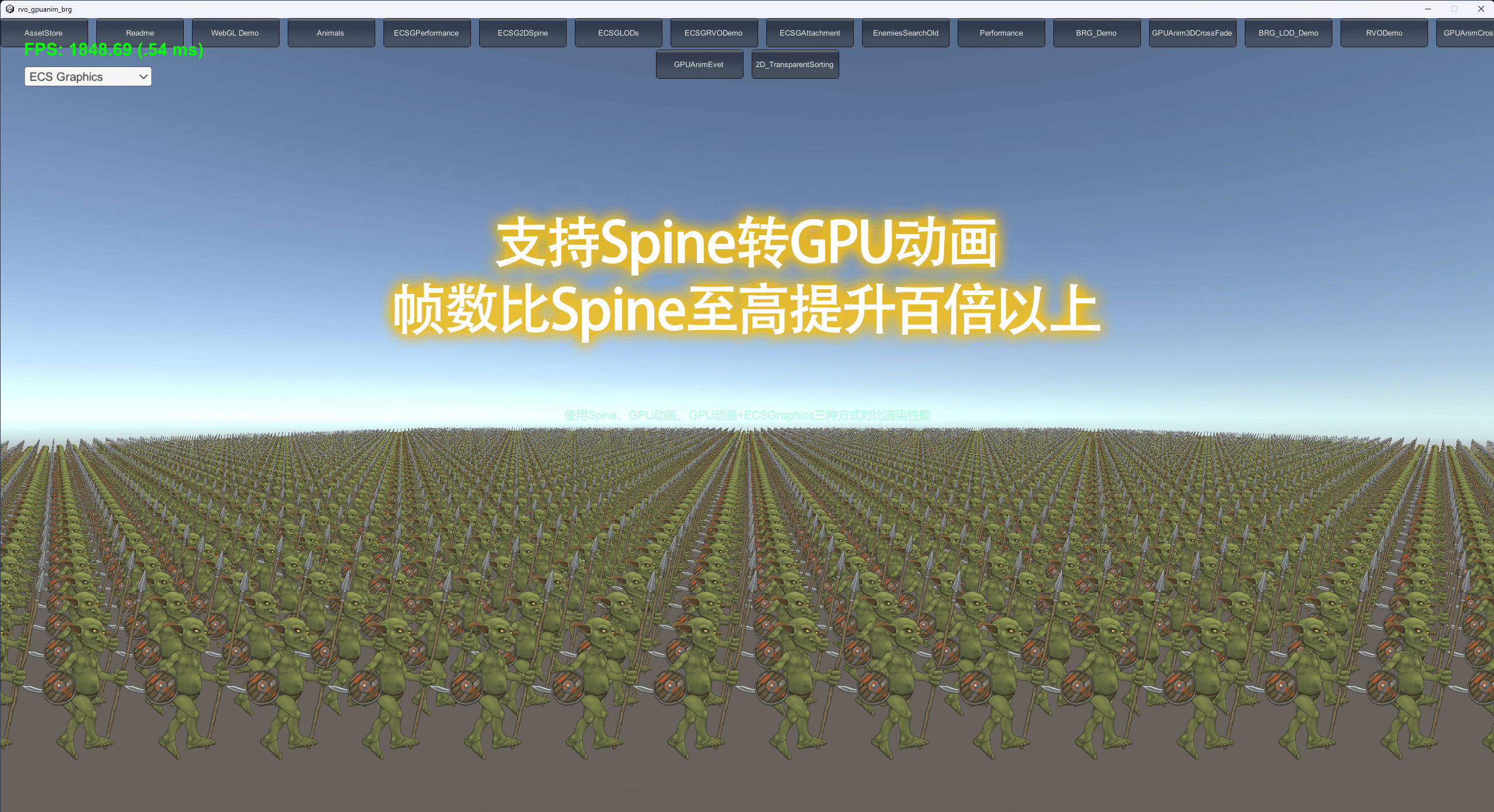 Unity通用性能优化插件,海量单位渲染、移动、索敌整合解决方案,支持Animator、Animation、Spine转为GPU动画,合批渲染大幅提升性能, 兼容Unity全平台(含微信小游戏)