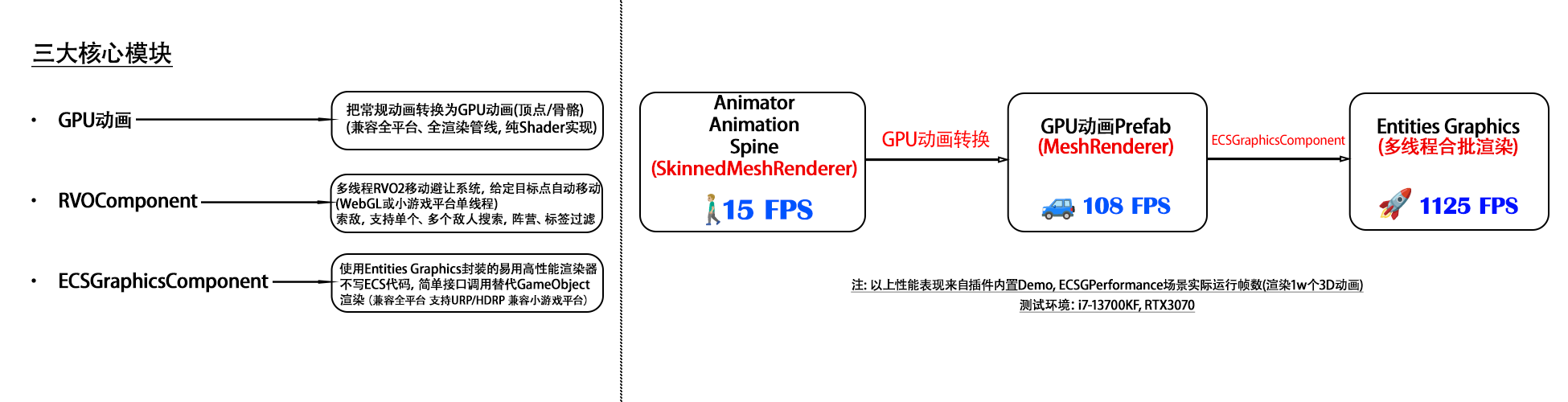 Unity通用性能优化插件,海量单位渲染、移动、索敌整合解决方案,支持Animator、Animation、Spine转为GPU动画,合批渲染大幅提升性能, 兼容Unity全平台(含微信小游戏)