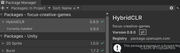 HybridCLR UPM版地址:https://github.com/focus-creative-games/hybridclr_unity.git