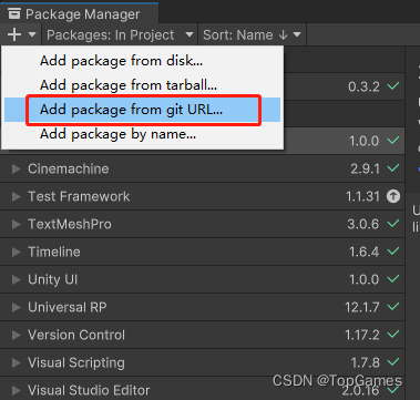 ①打开Package Manager通过 git URL添加插件,把https://github.com/focus-creative-games/hybridclr_unity.git粘贴进去即可: